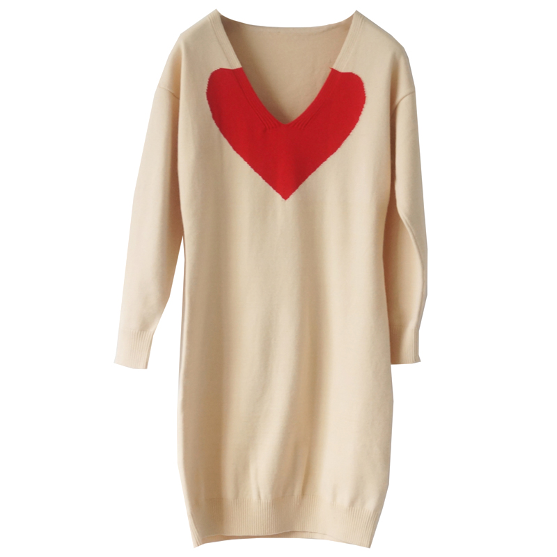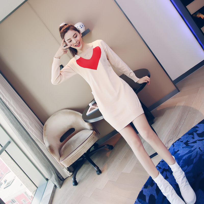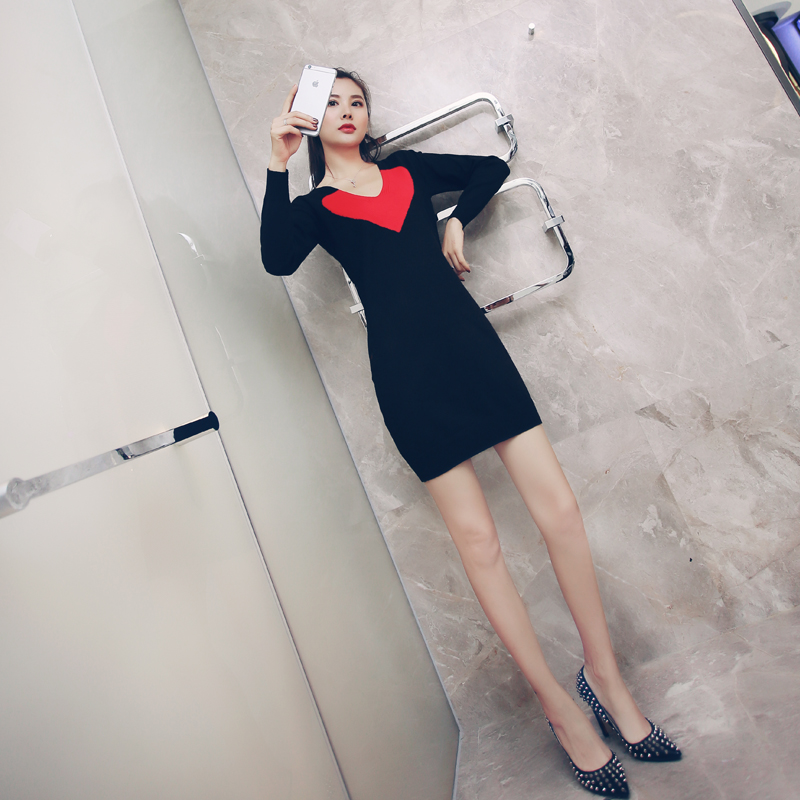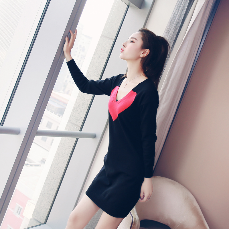針織連衣裙子女秋冬季2018新款收腰顯瘦V領長袖名媛氣質打底毛衣