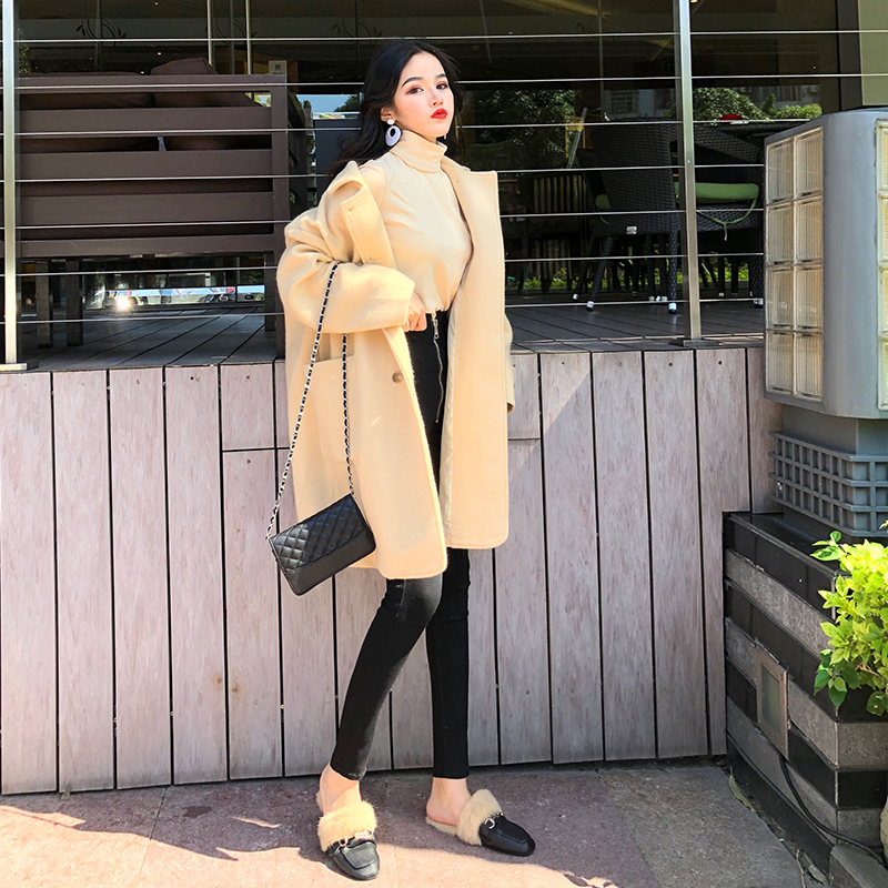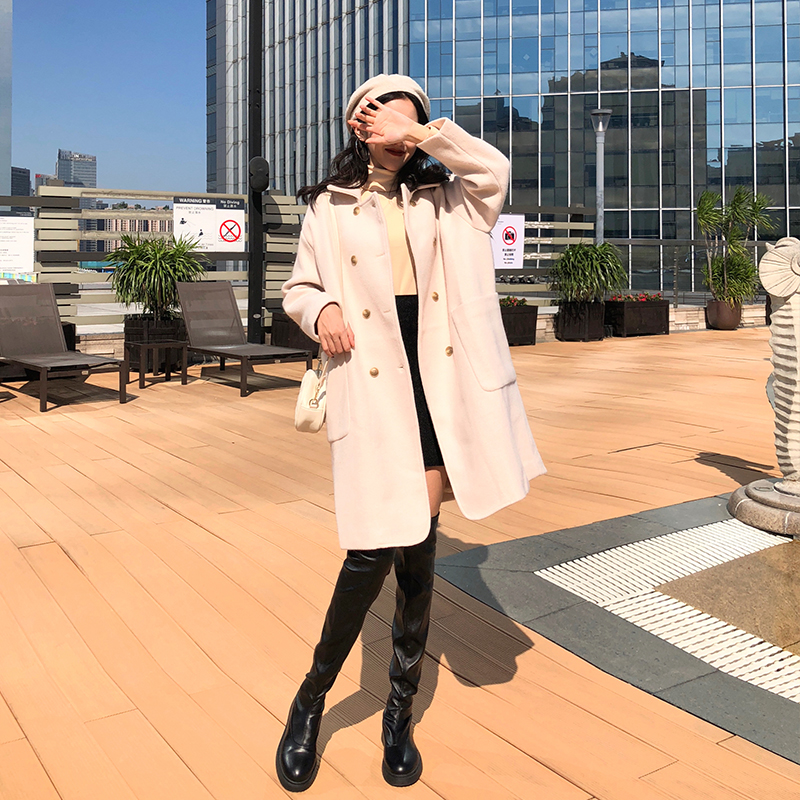 / 小香風秋冬新款韓版寬松中長款女裝呢子大衣加厚長袖氣質時尚外套