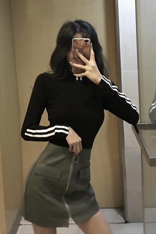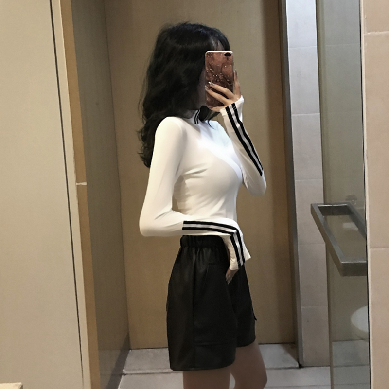 初秋新款女上衣韓版時尚chic基礎款百搭顯瘦高領純色打底衫t恤女