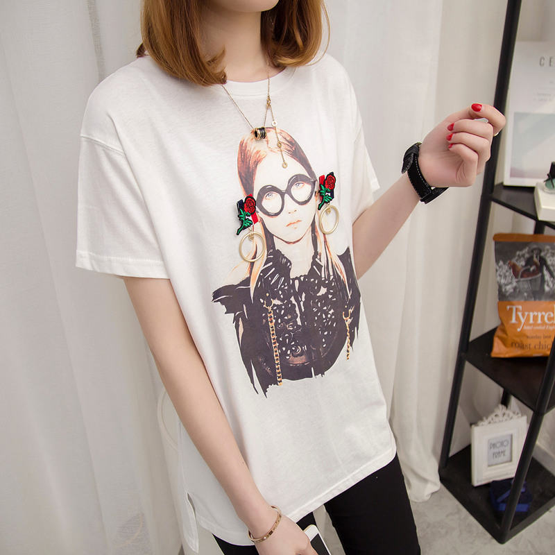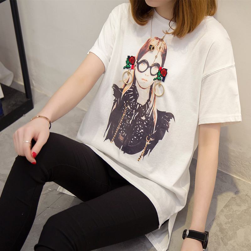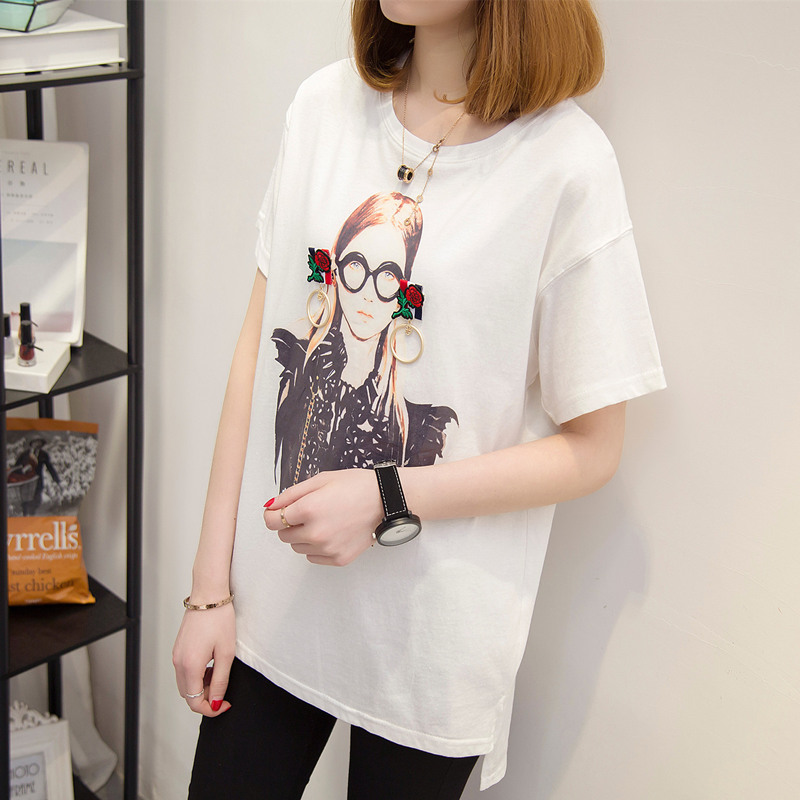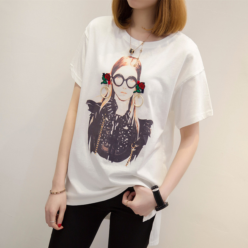 白色t恤女短袖寬松上衣女夏韓版打底人物體恤衫夏裝新款女裝