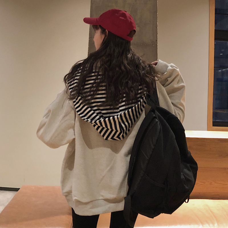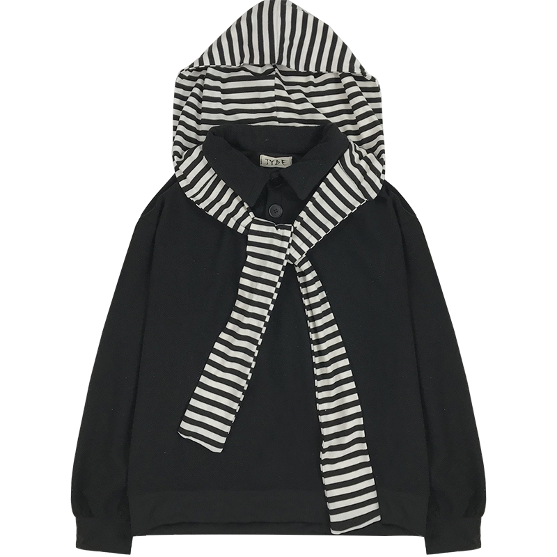 / 御姐套裝女秋冬新款學生時尚寬松長袖黑色衛衣外套條紋連帽披肩潮