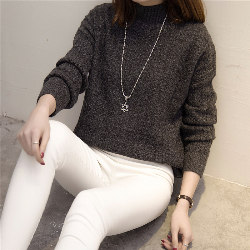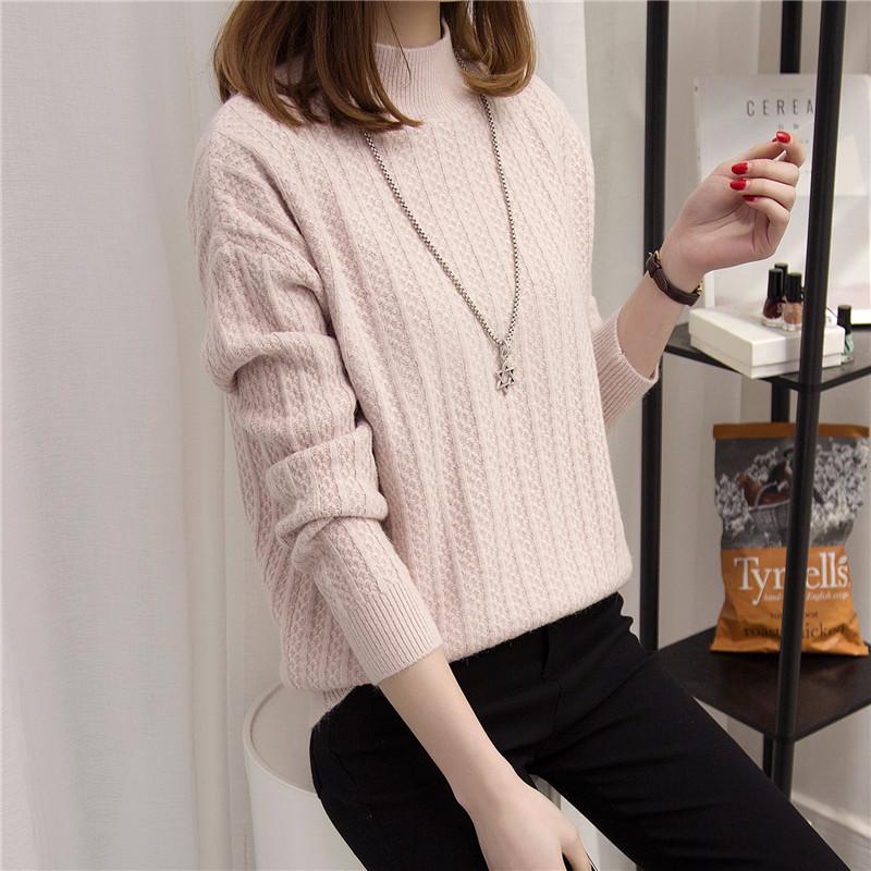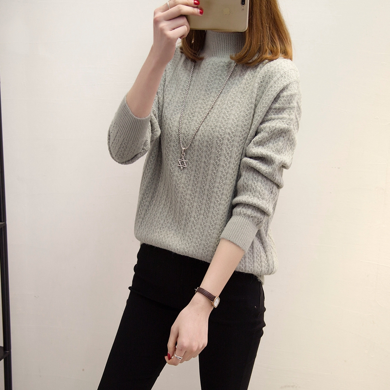 半高領套頭針織衫毛衣純色打底衫長袖韓版學生女裝冬裝新款潮