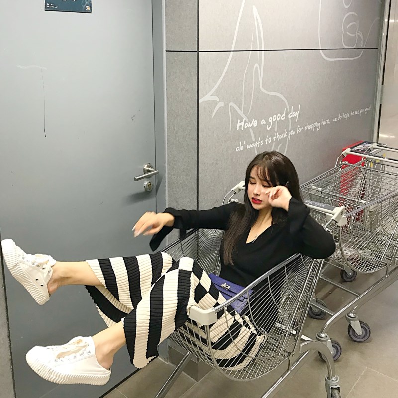 打底單穿都很好 ,魚尾半身裙經典的條紋元素