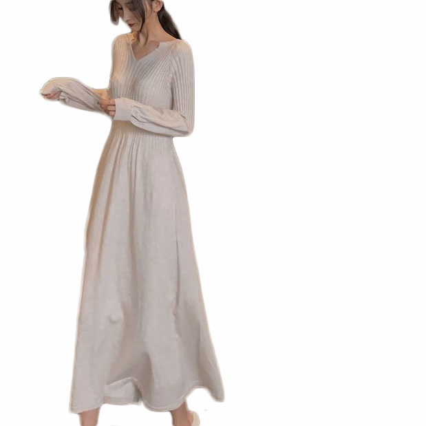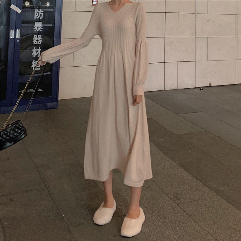 韓版初冬氣質溫柔風毛衣裙女冬裝2018新款女百搭顯腿長針織連衣裙