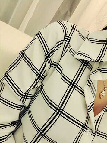 / 女裝2018早春新款印花格子襯衫女長袖學生裝韓范修身百搭雪紡襯衣
