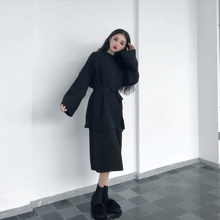 秋裝新款打底百搭連衣裙開衫慵懶風毛衣女外套寬松V領時尚套裝潮