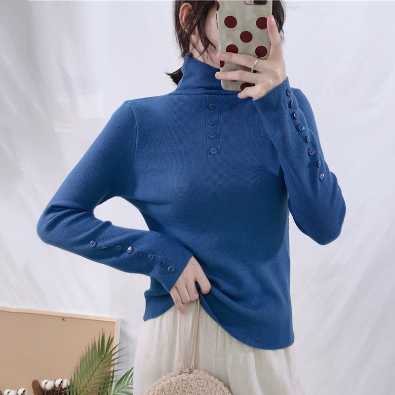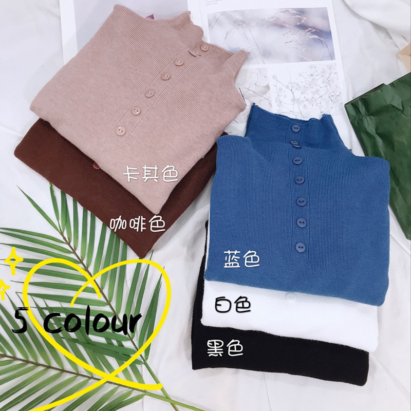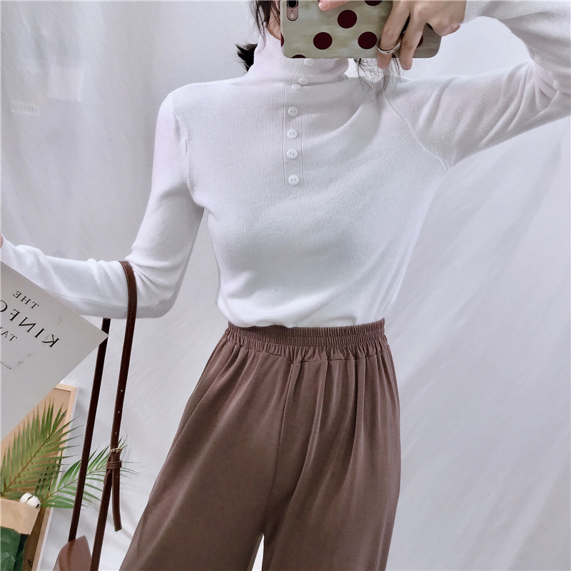 高領純色針織衫女秋冬裝2018新款韓版氣質修身長袖外穿打底薄毛衣