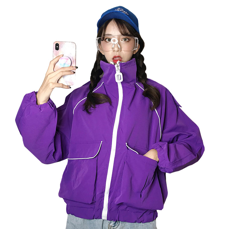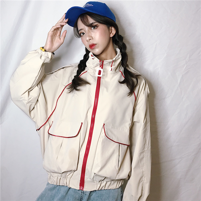 秋季女裝韓版BF風寬松純色百搭棒球服大口袋長袖夾克開衫上衣外套