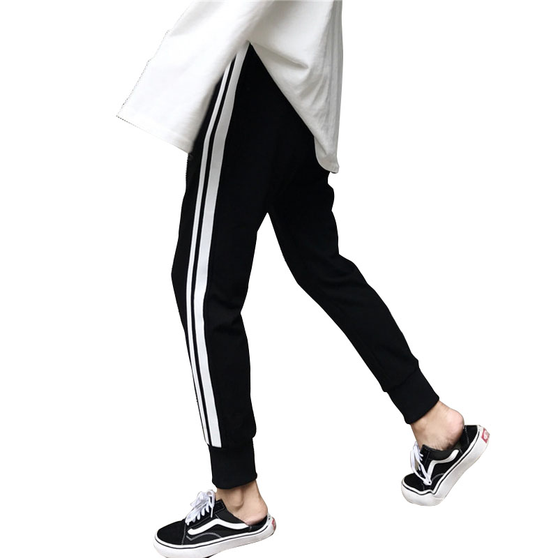 / 秋裝女裝韓版運動風側面寬松條紋哈倫褲九分褲休閑褲抽繩長褲學生