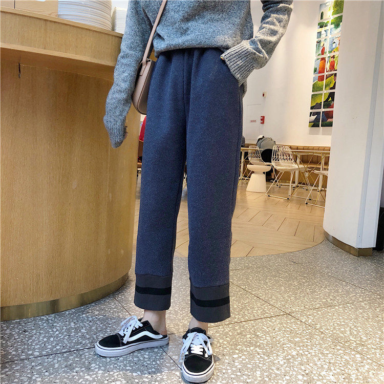 這條褲腳拼接寬松螺紋收口的蘿卜褲,