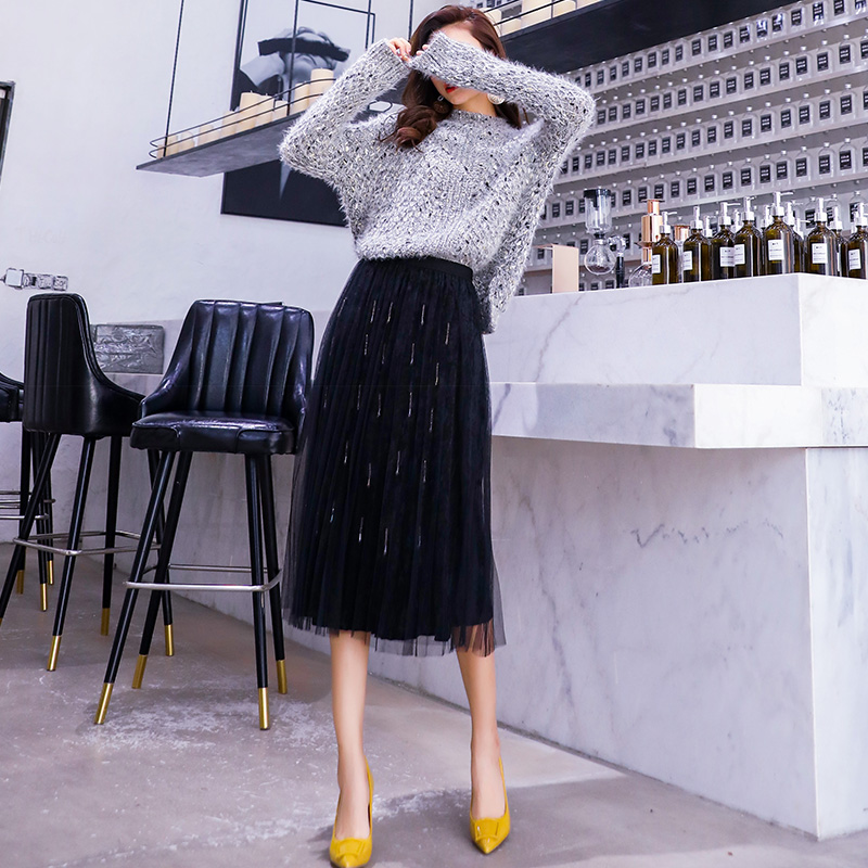 / 女神范2018秋冬季新款韓版網紅俏皮甜美港味毛衣網紗裙子兩件套裝