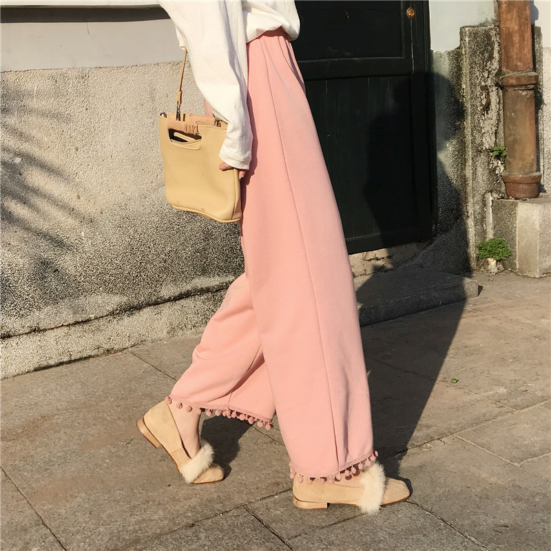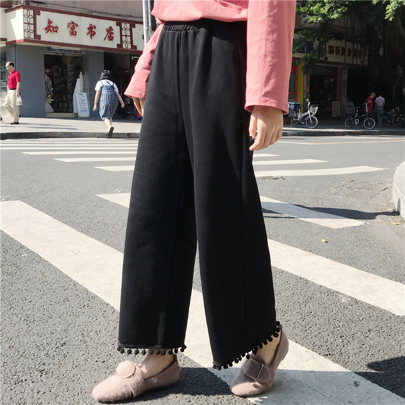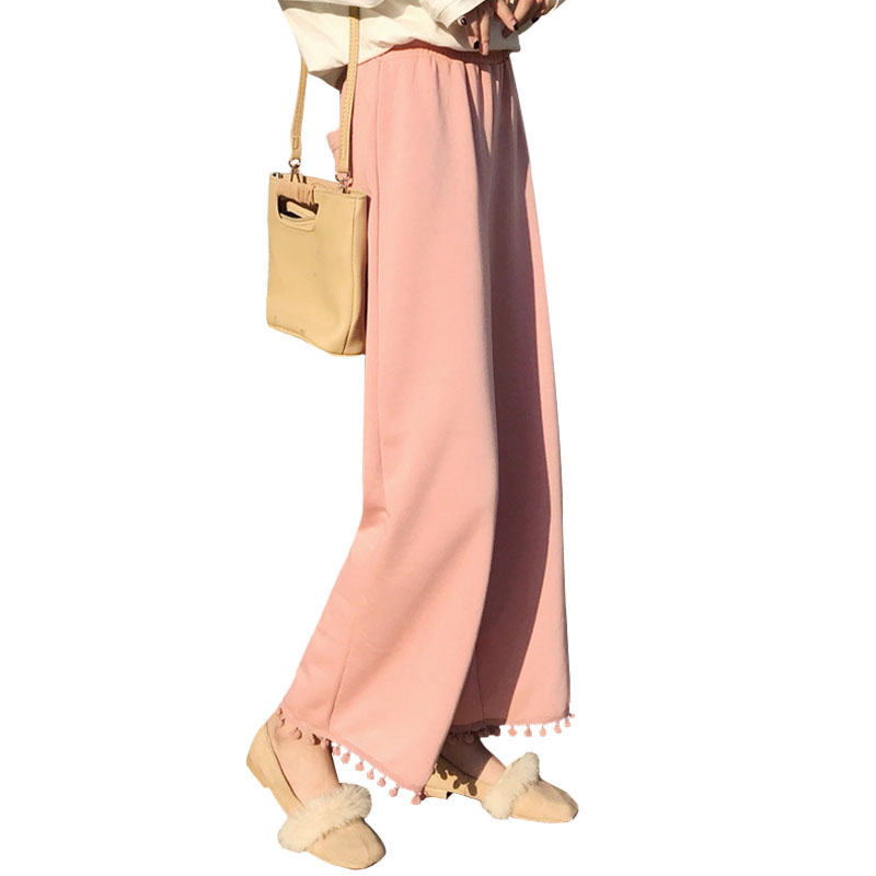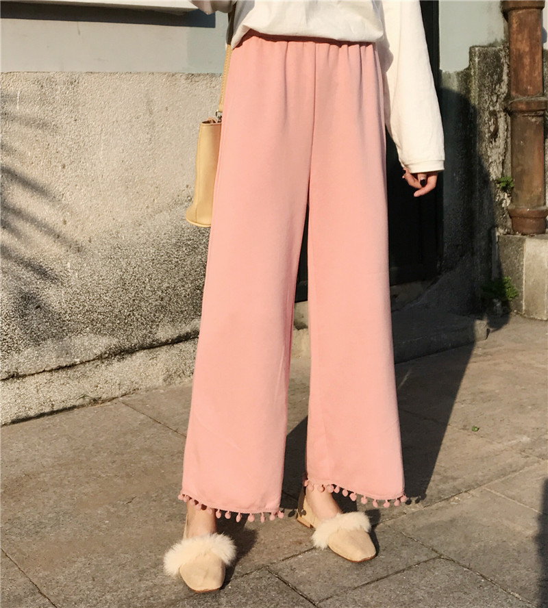 / 秋季女裝韓版寬松百搭下擺流蘇垂感闊腿褲高腰九分褲直筒褲休閑褲