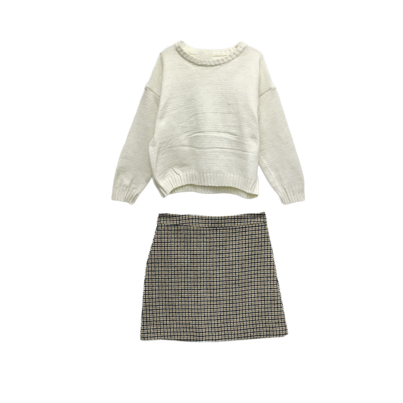 燕麥色毛衣|白色毛衣|千鳥格裙