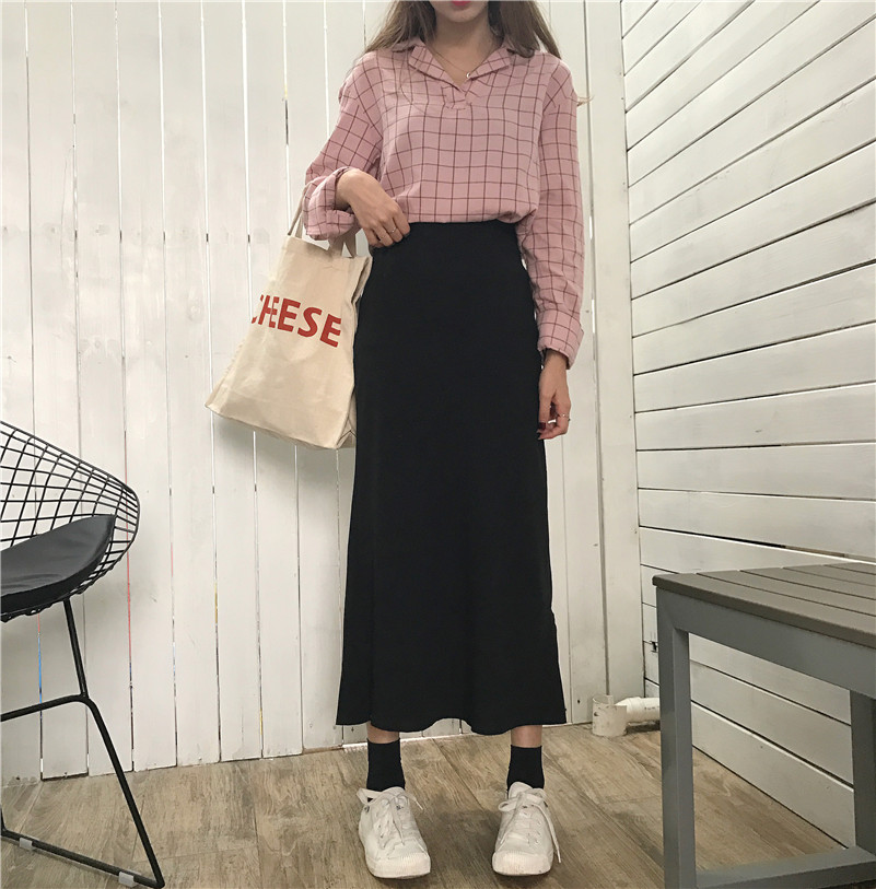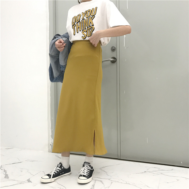 / 夏季新款女裝韓版仙女開叉松緊腰中長裙氣質百搭修身雪紡半身裙女
