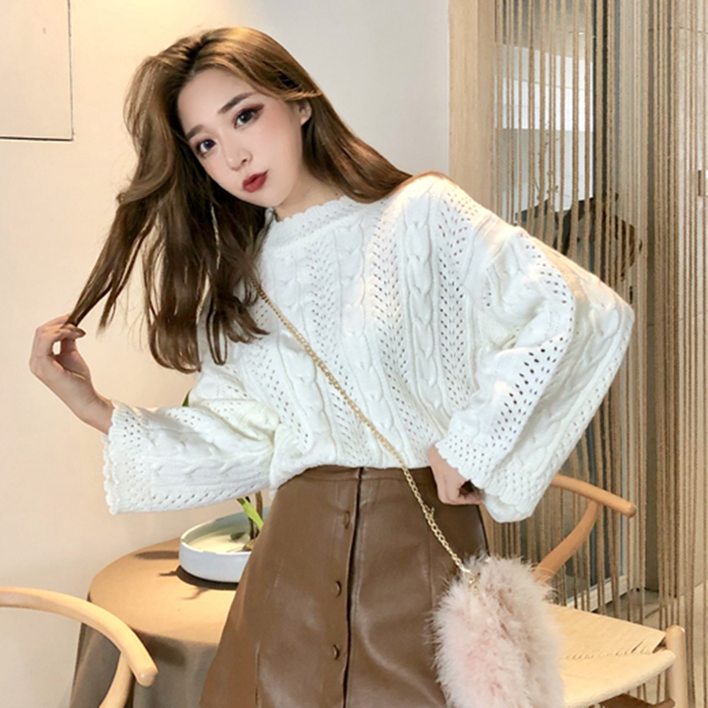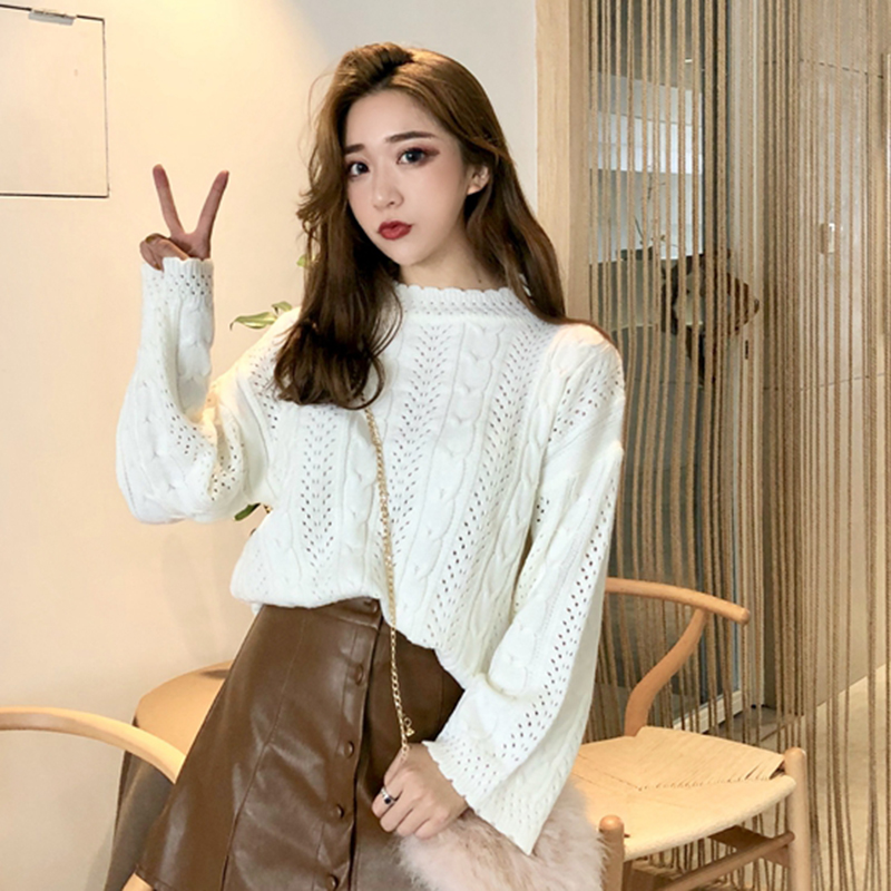 / 女2018秋裝新款韓版寬松木耳邊麻花套頭毛衣慵懶風長袖打底衫上衣