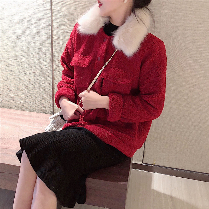 時尚套裝女2018秋冬新款大毛領羊羔毛外套中長款修身顯瘦打底裙子