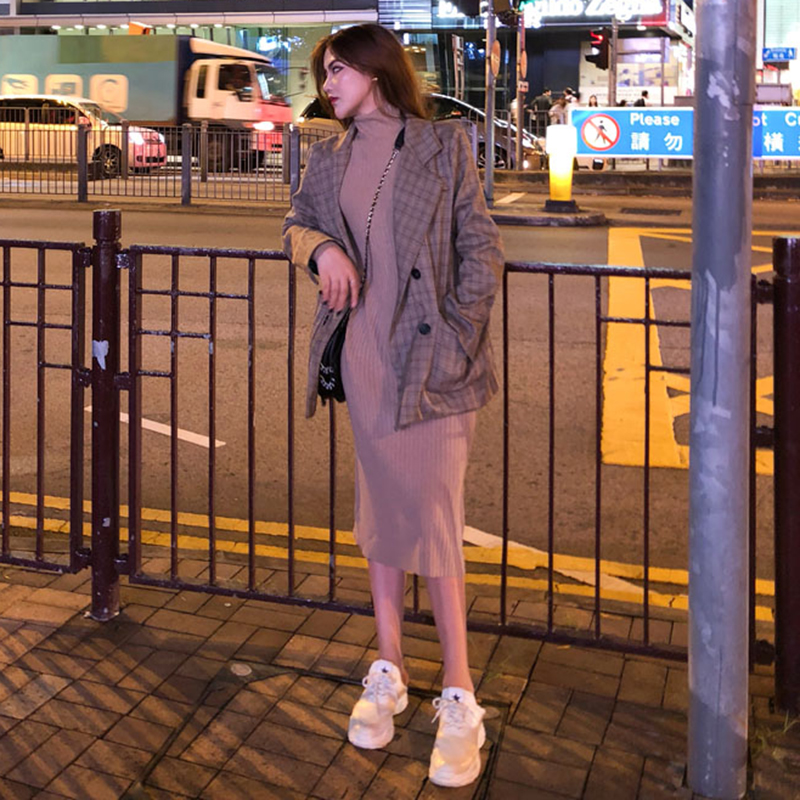 / 秋裝女新款修身顯瘦中長款高領長袖打底毛衣裙過膝包臀針織連衣裙