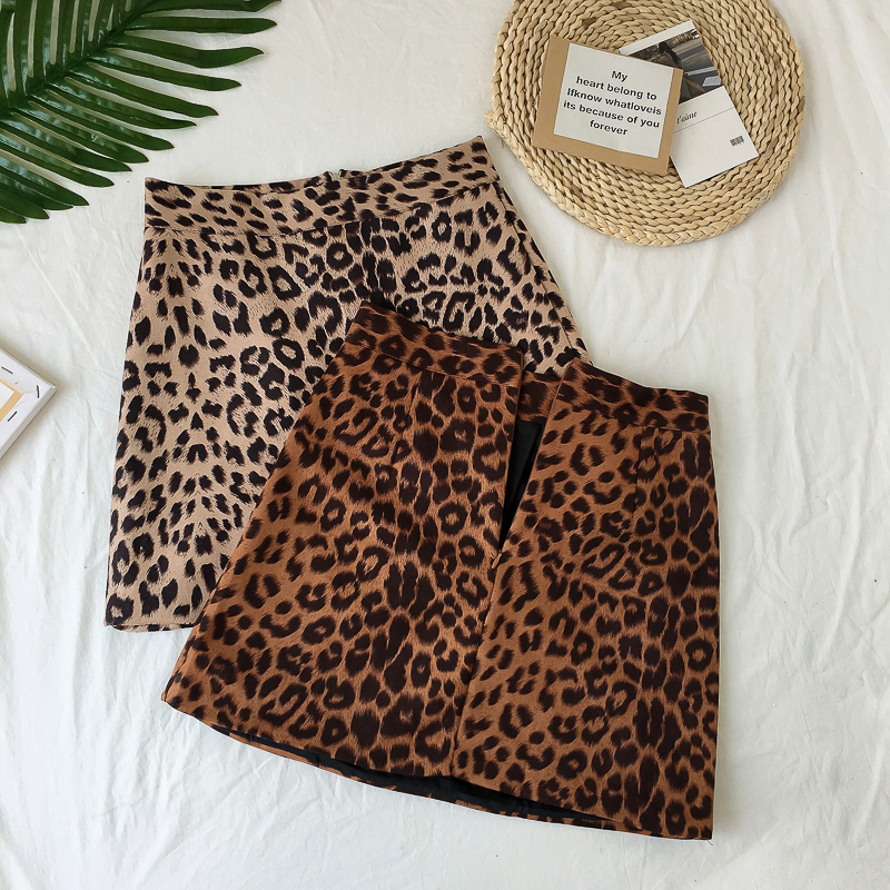 秋裝女2018新款顯瘦時尚豹紋包臀半身裙復古風高腰休閑A字短裙子