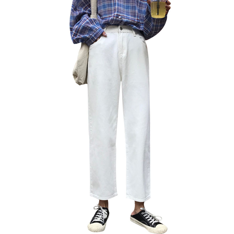 / 秋裝女裝韓版復古高腰顯瘦牛仔褲寬松百搭闊腿褲直筒褲九分褲學生
