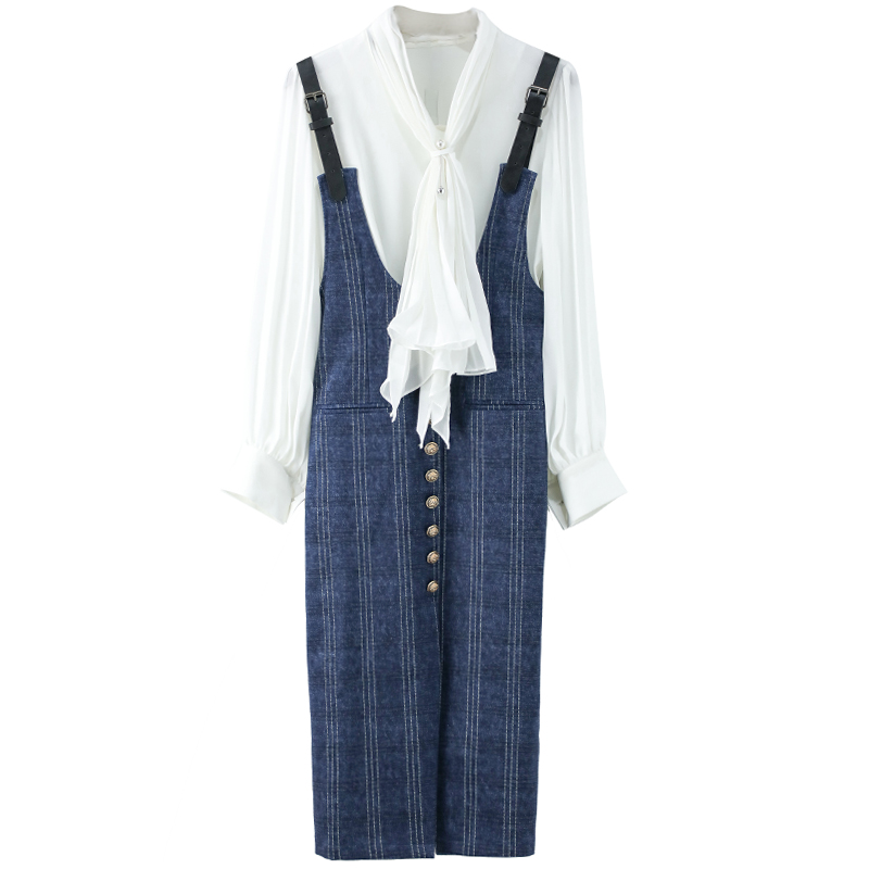 牛仔連衣裙女秋2018新款減齡顯瘦洋氣長袖襯衫背帶套裝裙兩件套潮