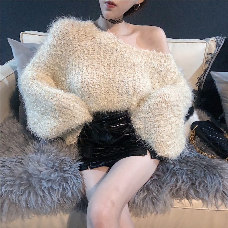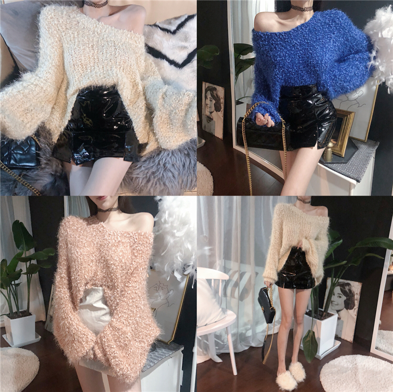 / 網紅新品v領毛衣2018新款明星私衣同款百搭針織上衣清新短款露肩