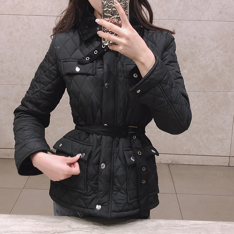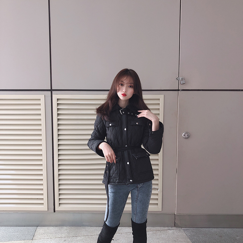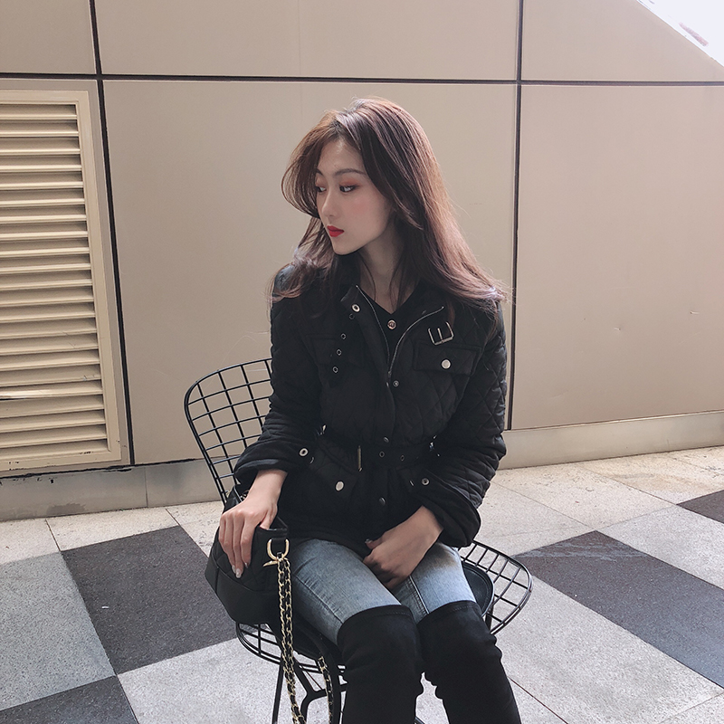 chic韓版系帶收腰顯瘦棉衣外套冬季女2018新款百搭修身長袖面包服