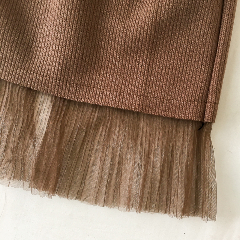 高腰顯瘦網紗拼接呢子半身裙女秋冬裝新款韓版chic黑色A字中長裙