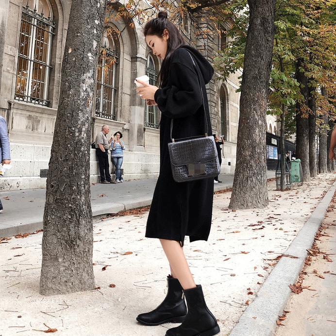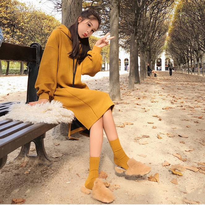 / 2018秋季新款針織連衣裙寬松中長款衛衣連衣裙成熟女裝氣質學生潮