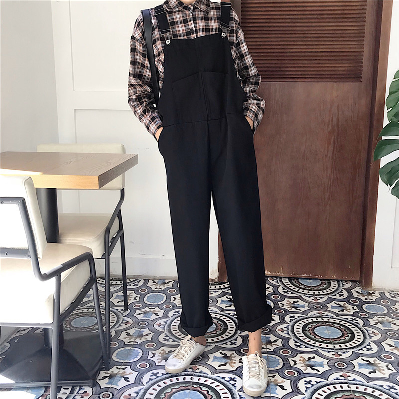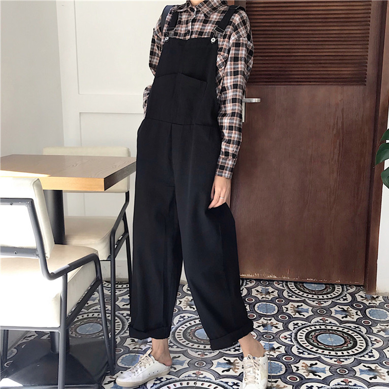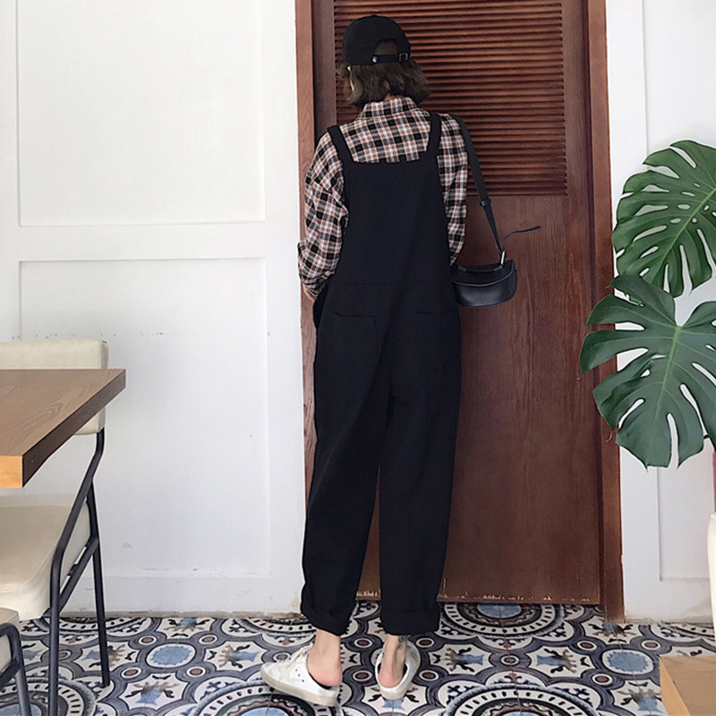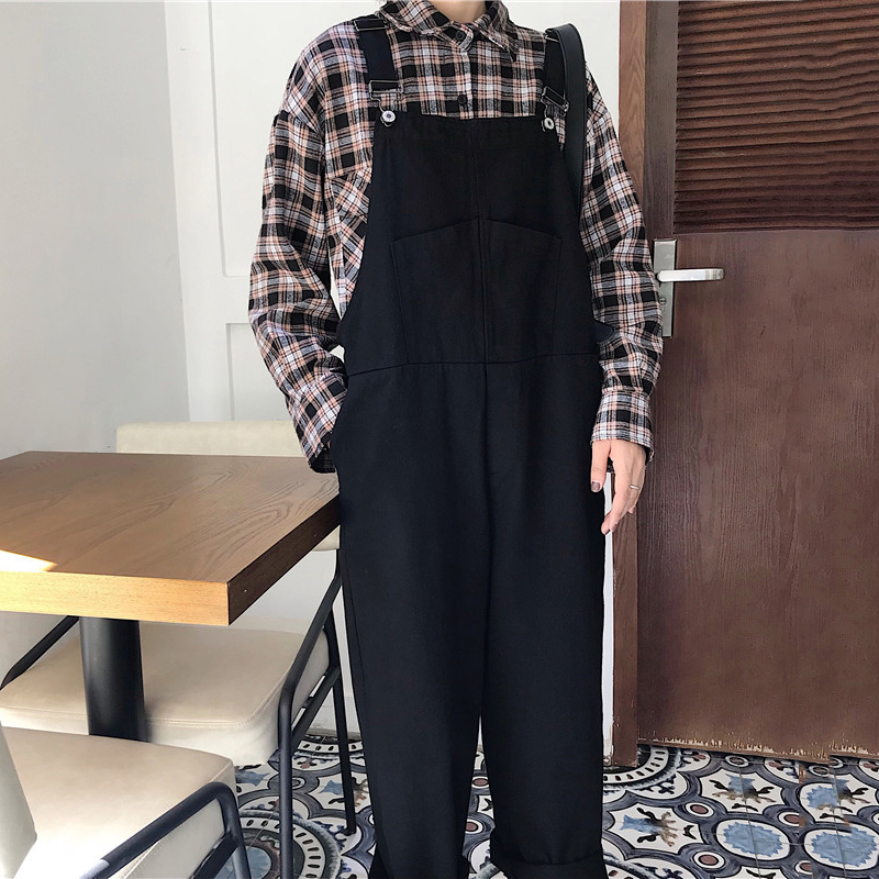 原宿風背帶褲女秋冬裝2018新款韓版寬松牛仔休閑闊腿連體褲長褲子