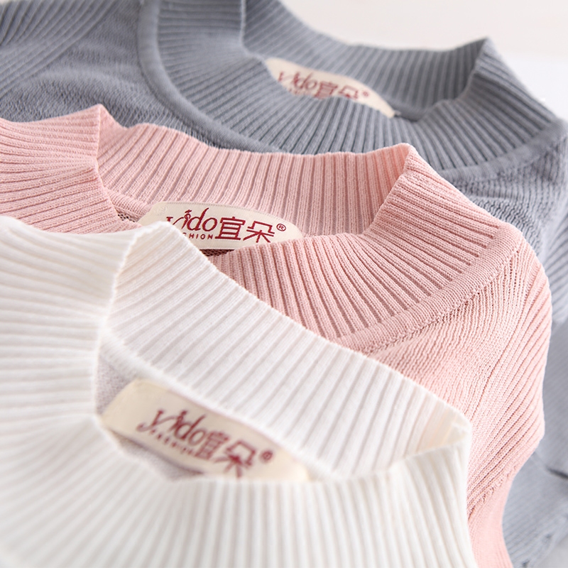 / 宜朵夏季喇叭袖針織衫上衣女修身套頭七分中袖針織衫T恤女薄短款