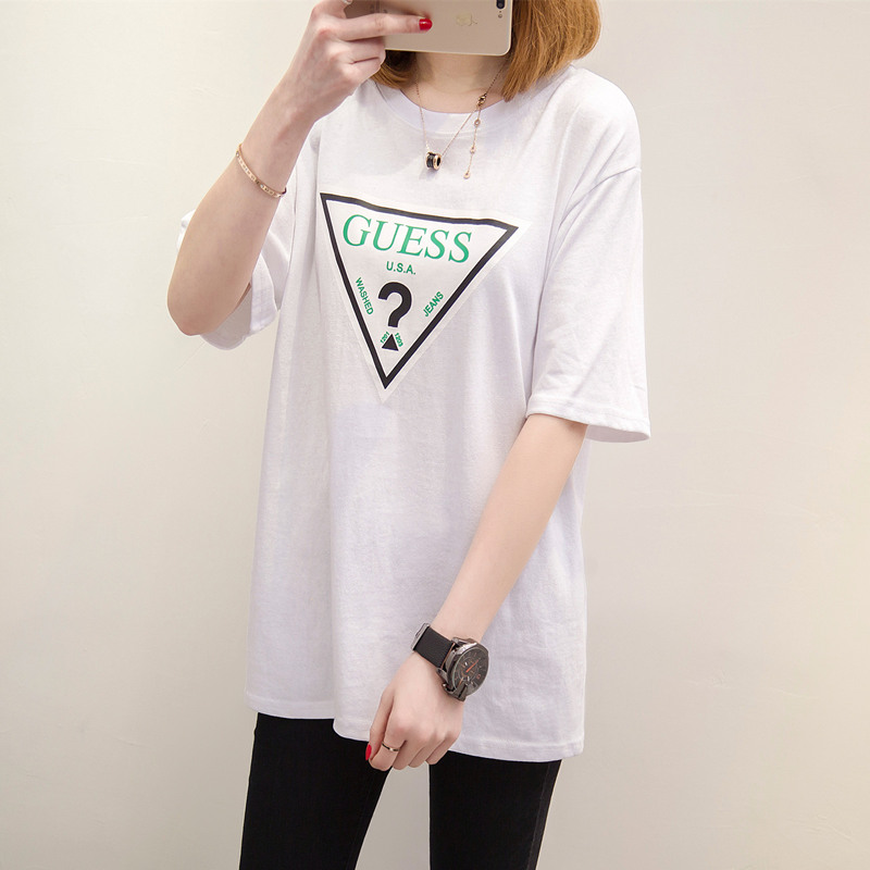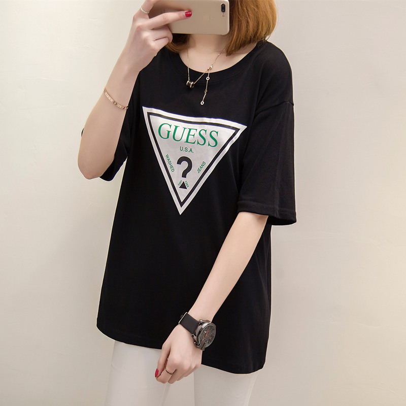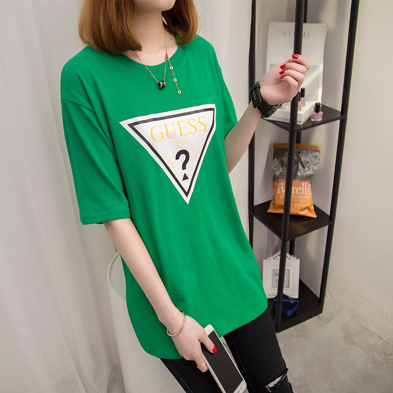 / 女裝春裝新款潮上衣中長款個性時尚短袖t恤女寬松韓版打底衫