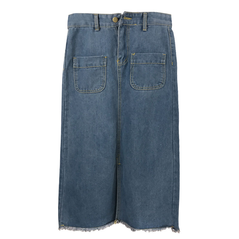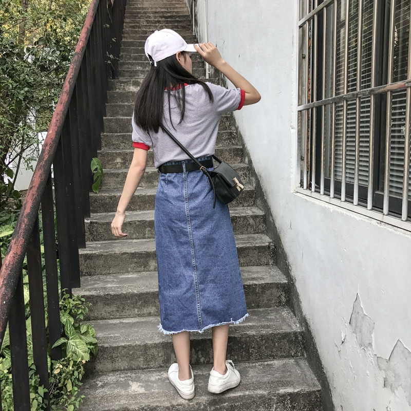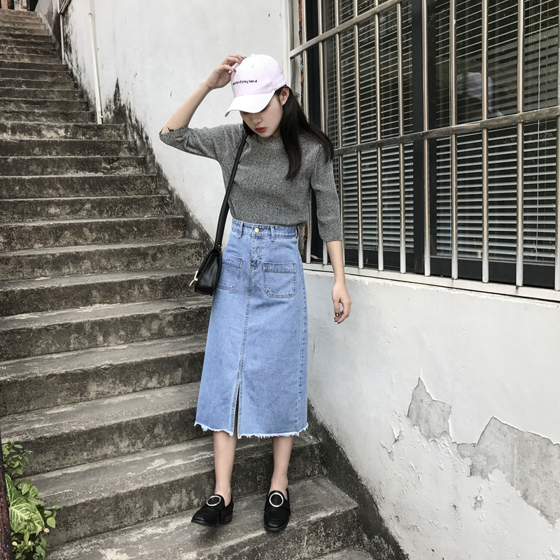 / 早春新款女裝氣質前開叉毛邊高腰顯瘦學生百搭中長款A字半身裙女
