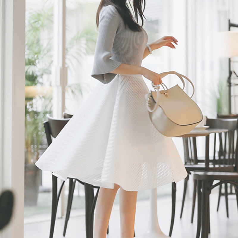春夏冰絲針織上衣女韓版白色t恤女修身純色打底衫女薄針織衫