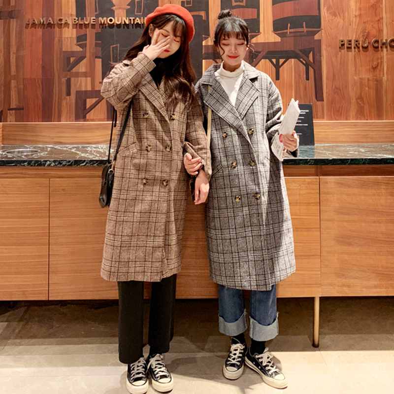 / 2018流行毛呢外套女秋冬裝新款赫本大衣小個子格紋風衣夾棉開衫潮