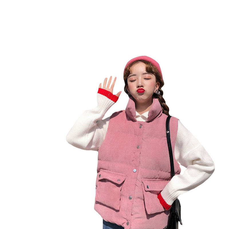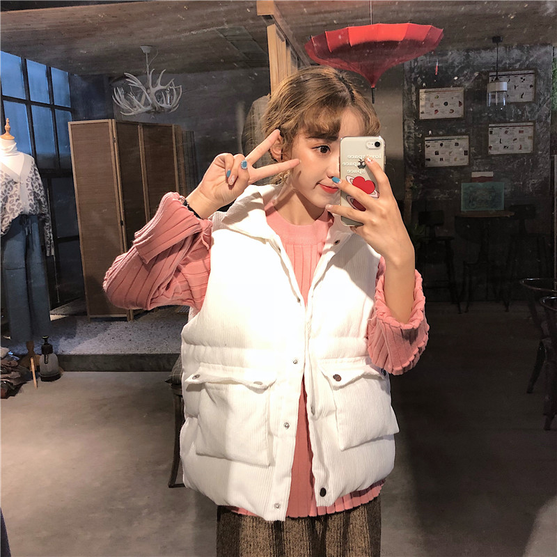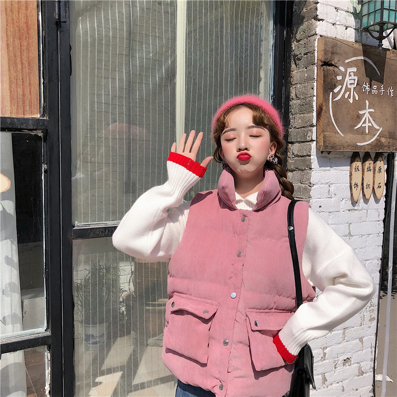 / 2018新款冬季韓版學院風寬松燈芯絨手塞棉學生無袖棉衣馬甲外套女