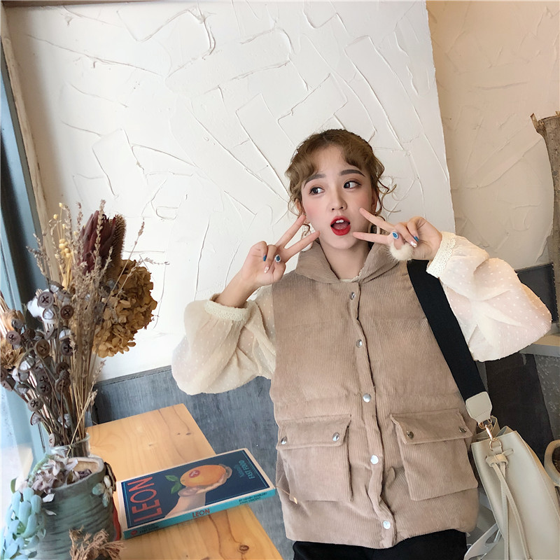 2018新款冬季韓版學院風寬松燈芯絨手塞棉學生無袖棉衣馬甲外套女