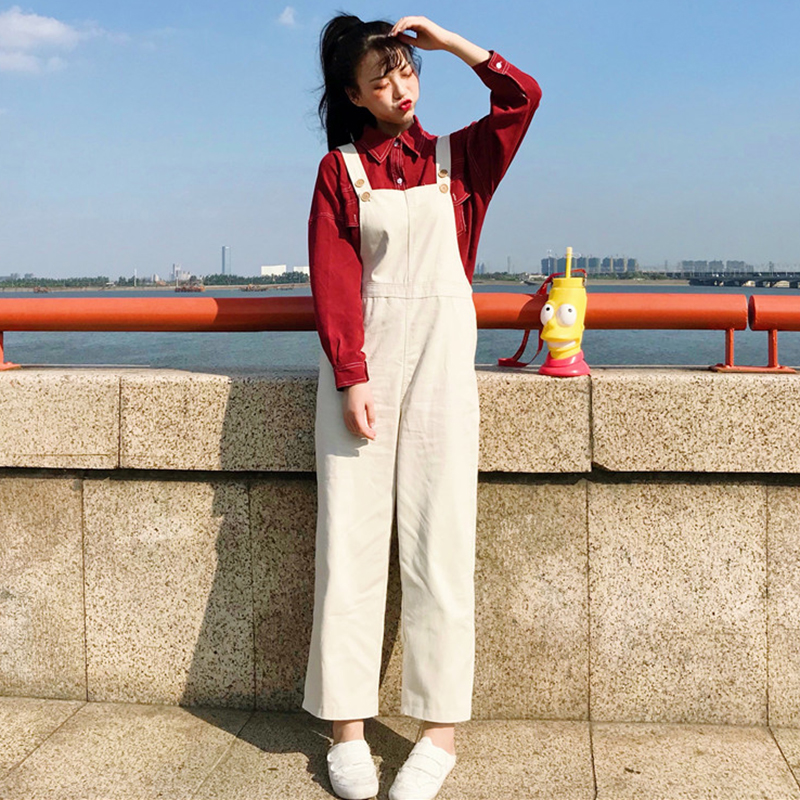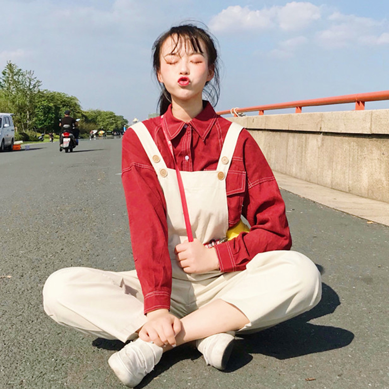酒紅襯衣單件|白色襯衣單件|米白色背帶褲單件|藏藍色背帶褲單件