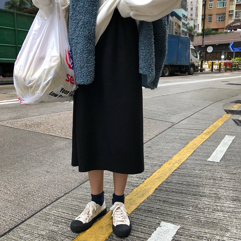 / 韓版時尚休閑套裝秋季女裝純色衛衣+羊羔毛馬甲+開叉半身裙三件套