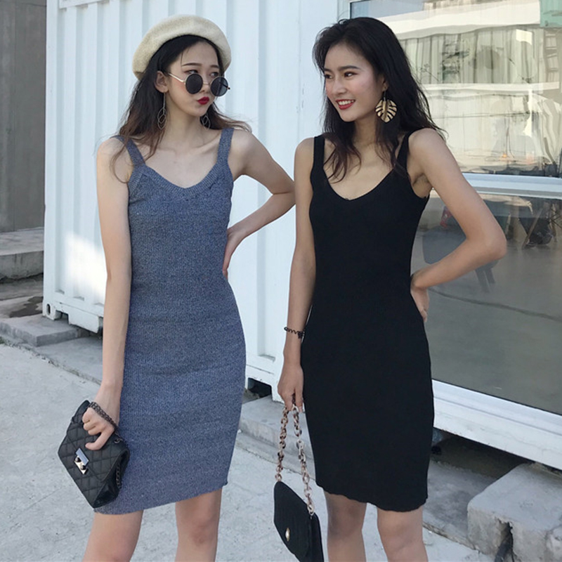 氣質中長款V領針織打底裙女秋冬裝2018新款韓版修身顯瘦連衣裙子