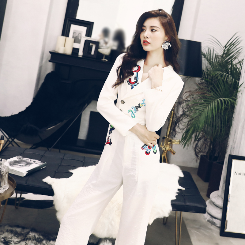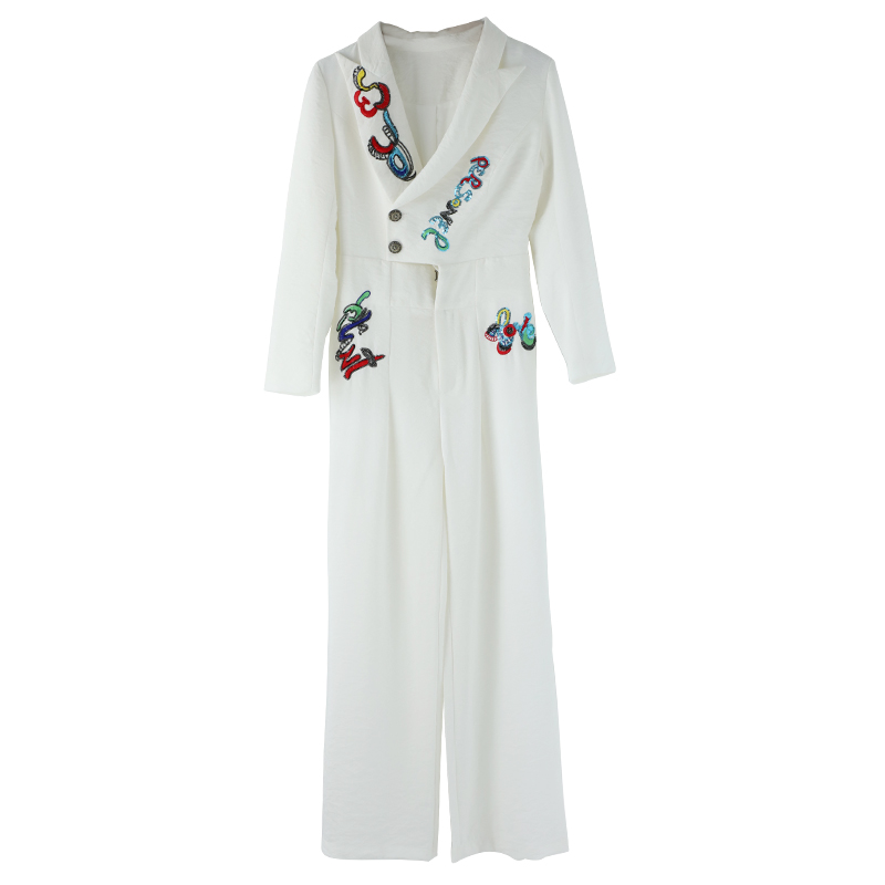 / 名媛氣質連體褲女秋季2018新款顯瘦刺繡繡花復古長袖連衣闊腿褲潮
