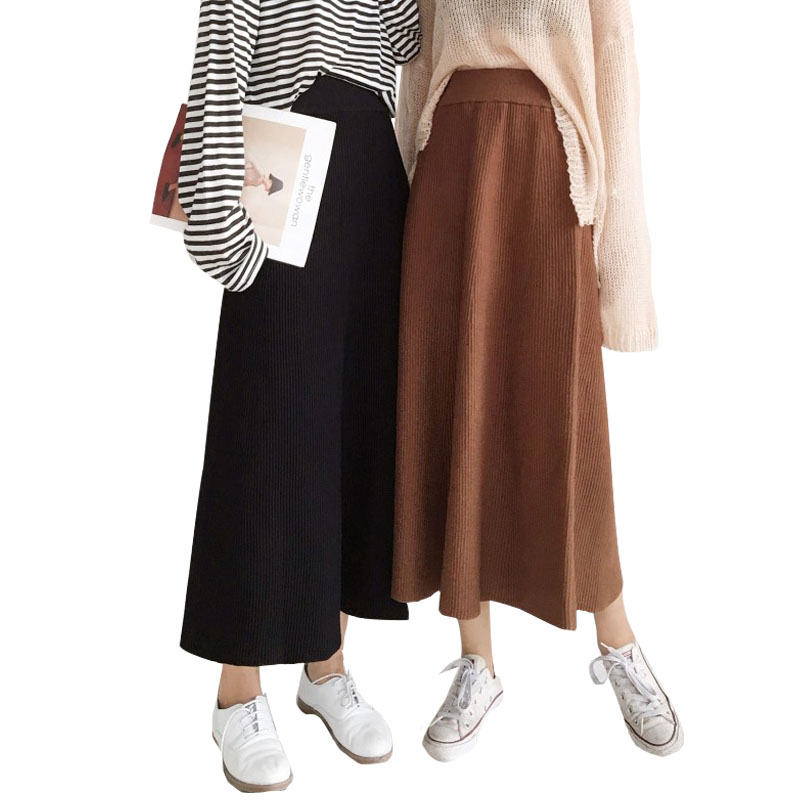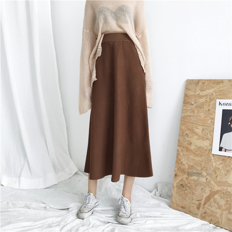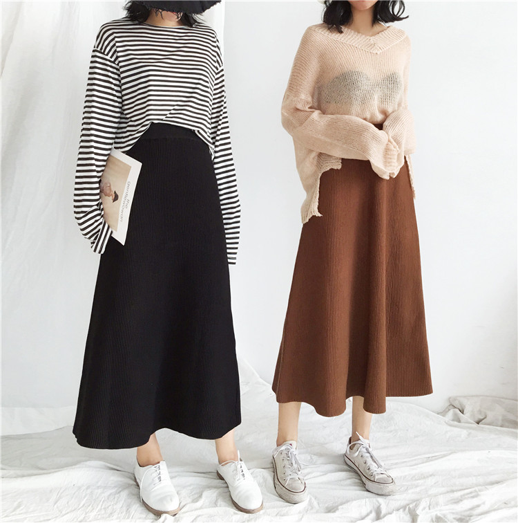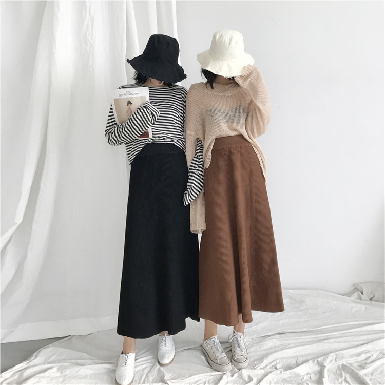 秋季女裝韓版復古高腰針織半身裙中長款顯瘦A字裙包臀裙學生長裙