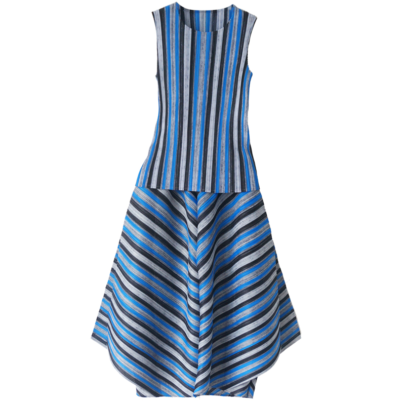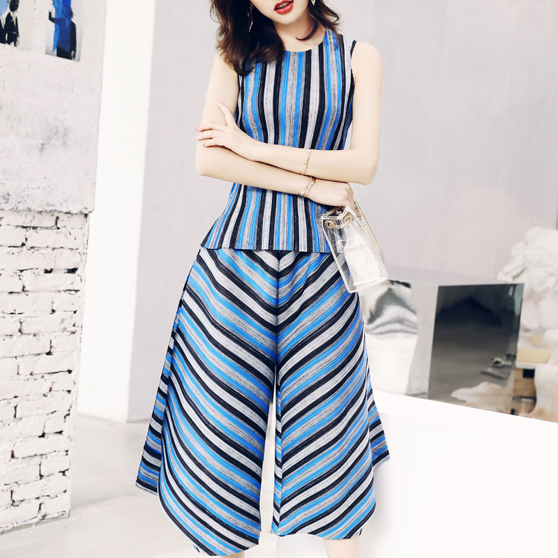 / S秀名媛氣質套裝女夏2018新款無袖上衣顯瘦條紋闊腿時尚兩件套