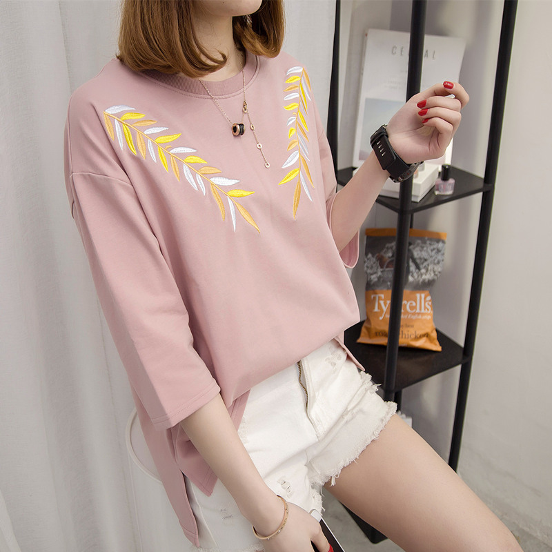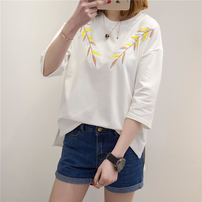 女裝夏裝新款潮白色t恤女中長袖寬松韓版短袖體恤春季打底衫