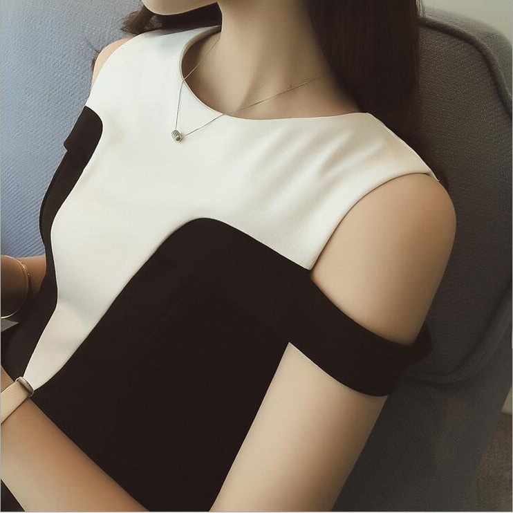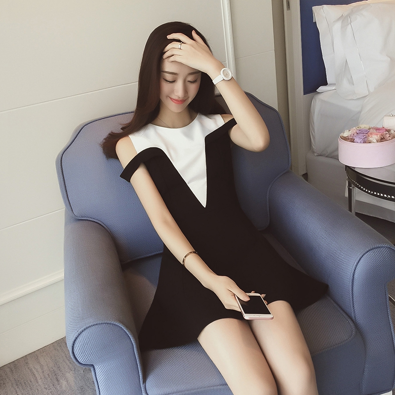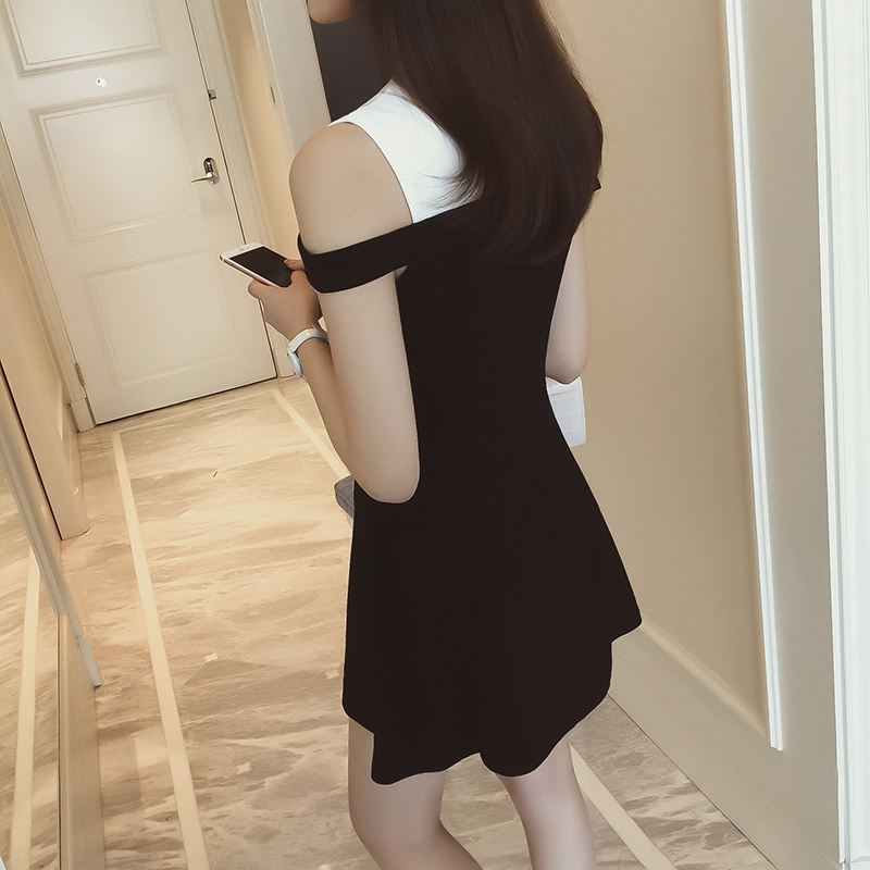 / 連衣裙女夏季新款黑白拼接中長款修身顯瘦無袖露肩a字裙韓版
