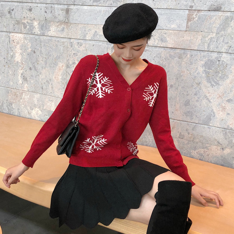 御姐套裝女秋冬新款時尚雪花修身針織衫外套高腰顯瘦A字半身裙子