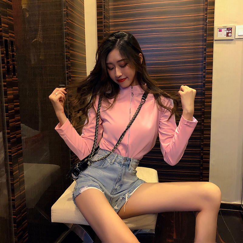 初秋新款女上衣抖音同款網紅套頭連帽打底針織緊身顯瘦黑色毛衣女