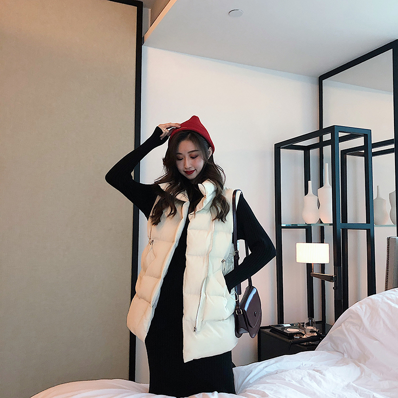 韓國外套冬裝女2018新款收腰中長款立領手塞棉服百搭寬松馬甲外套