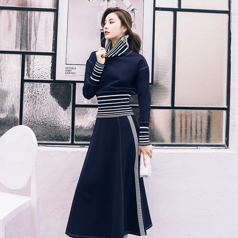 / 早秋裝御姐范女時尚女神氣質俏皮彈力棉網紅洋氣寬松裙子兩件套裝