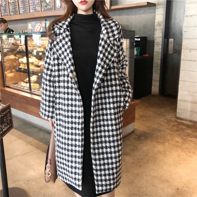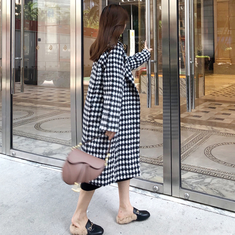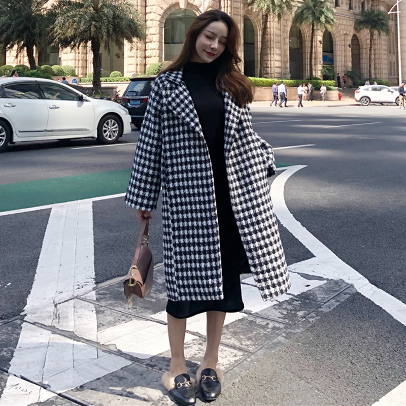 / 2018新款流行呢子大衣女冬裝2018新款氣質翻領千鳥格加厚毛呢外套