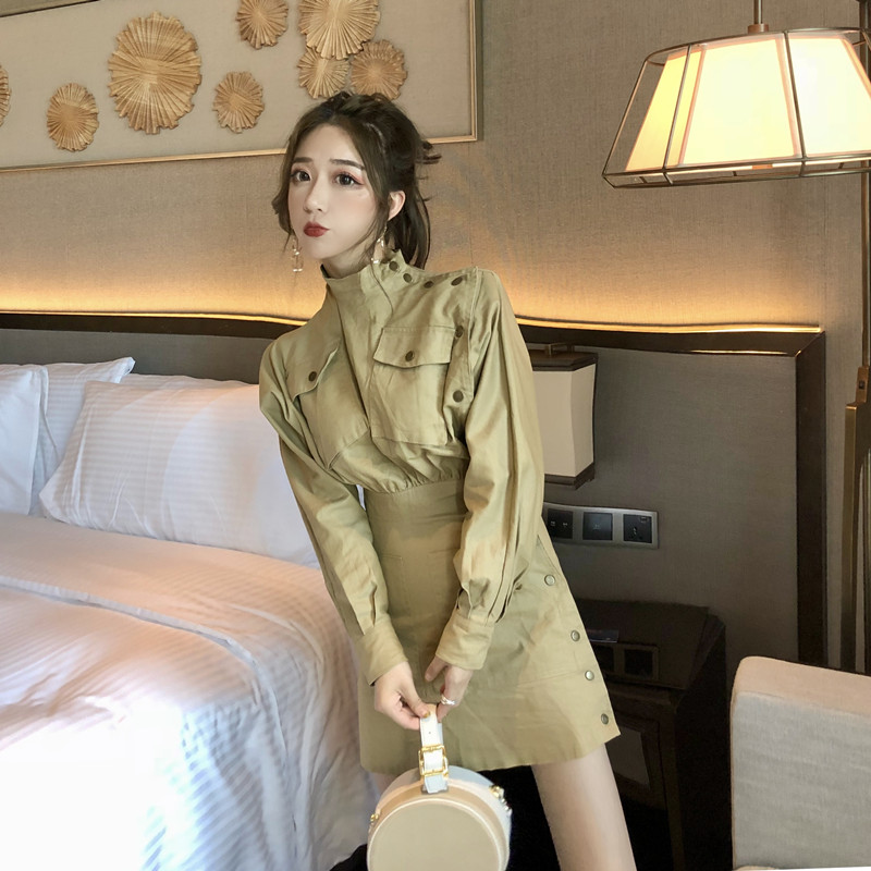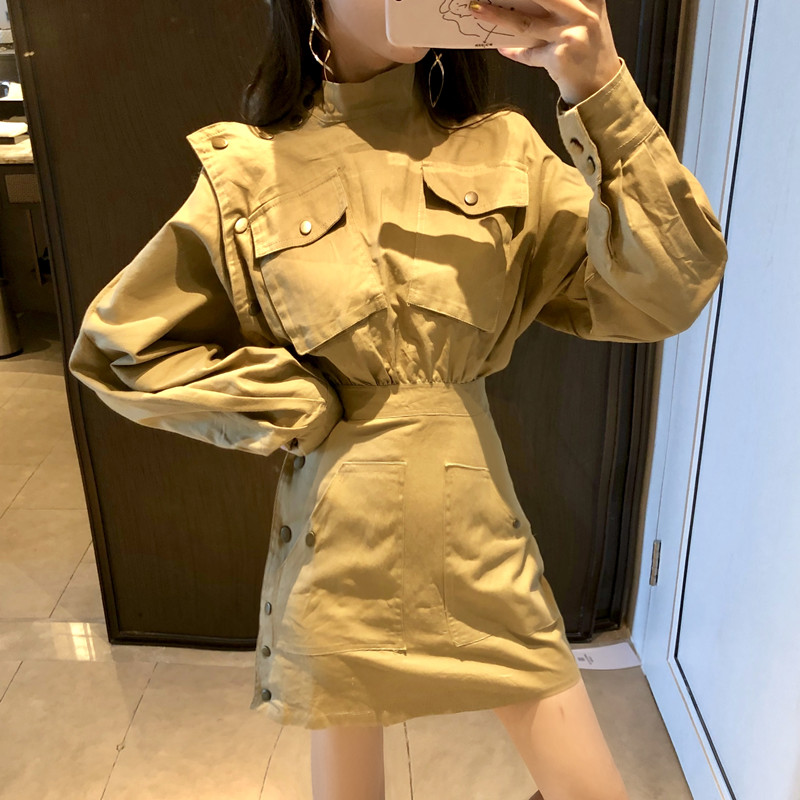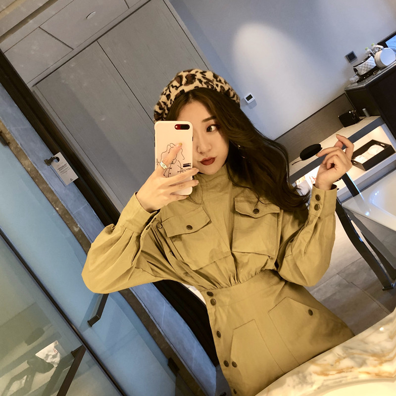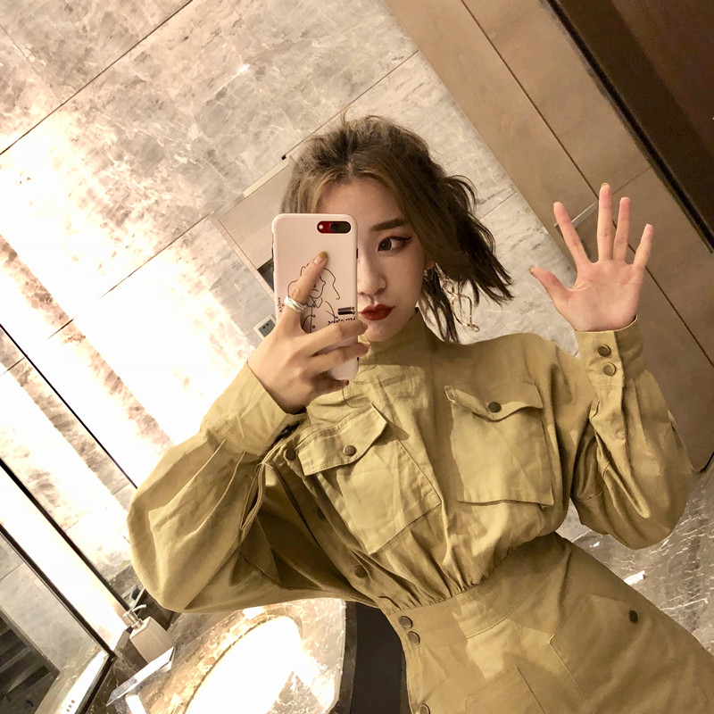 / 韓版chic半高領收腰顯瘦中長款修身A字秋季連衣裙女長袖2018新款